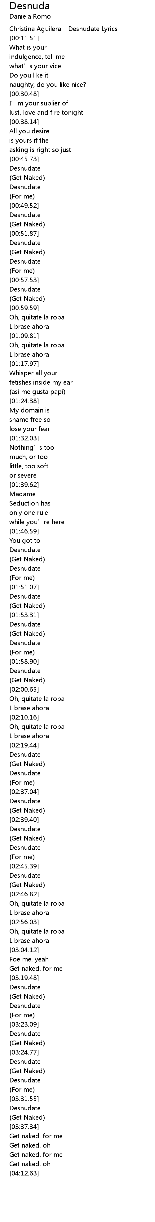 | [00:00.00] | Christina Aguilera Desnudate Lyrics |