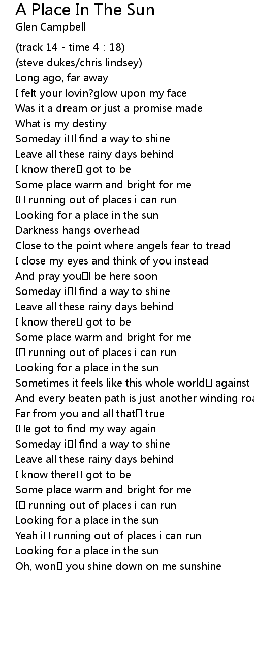 | 歌曲 | A Place In The Sun |