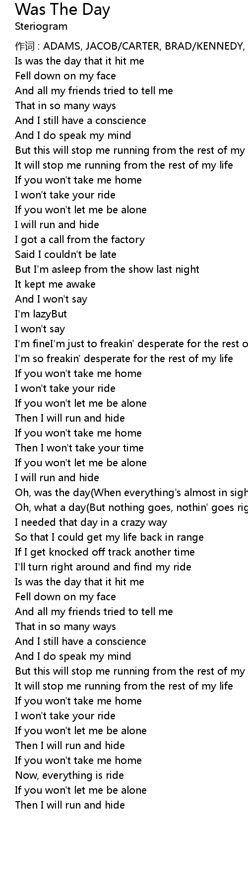 | 歌曲 | Was The Day |