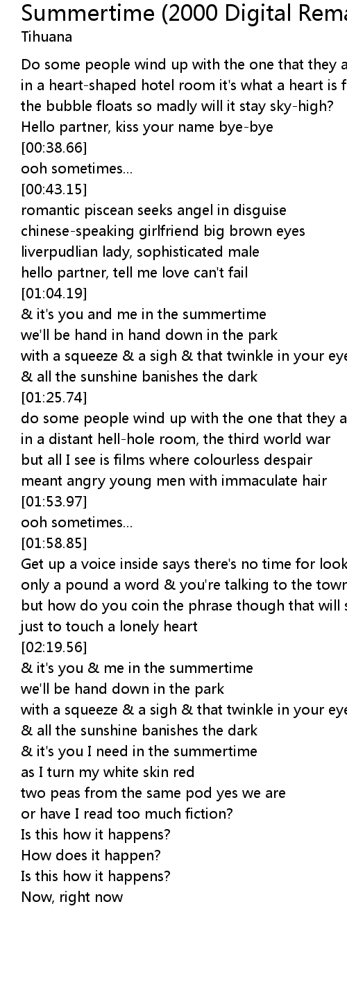 & it's you I need in the summertime |