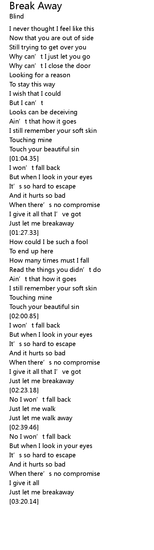 | [02:17.50] | Just let me breakaway |
