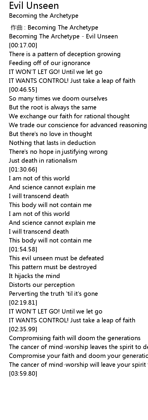 | [00:02.00] | Becoming The Archetype - Evil Unseen |