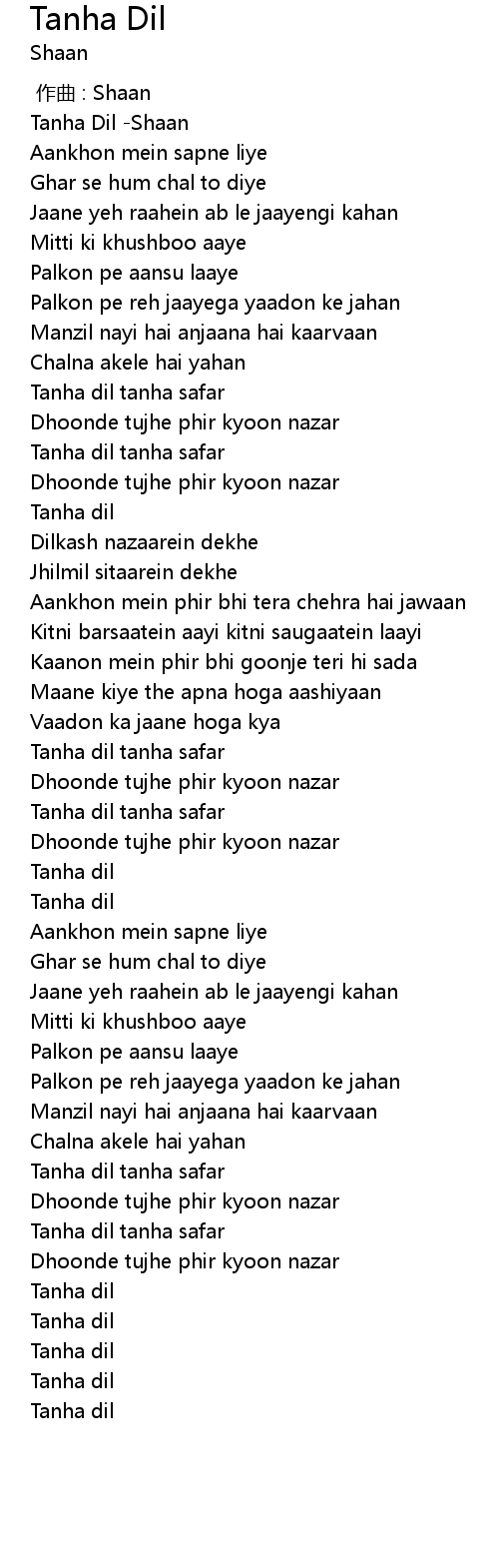 | [00:00.00] | Tanha Dil -Shaan |