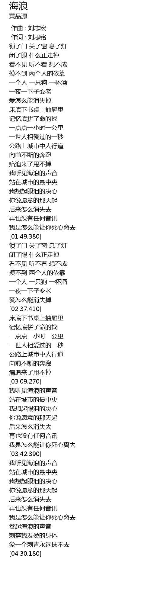 | [04:15.340] | 卷起海浪的声音 |