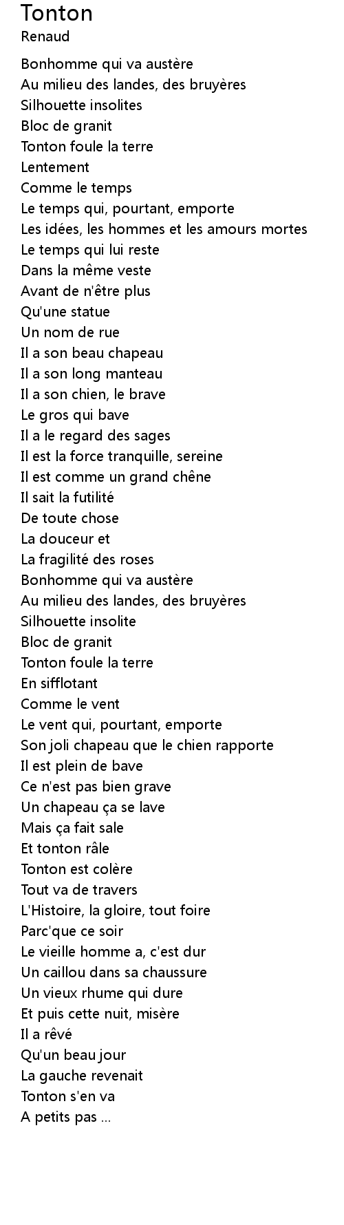 | Tonton s' en va | |