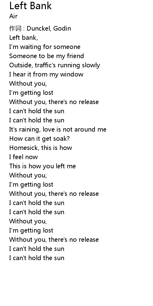 | 歌曲 | Left Bank |