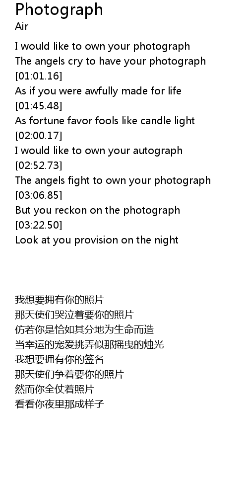 | [00:55.93] | 那天使们哭泣着要你的照片 |