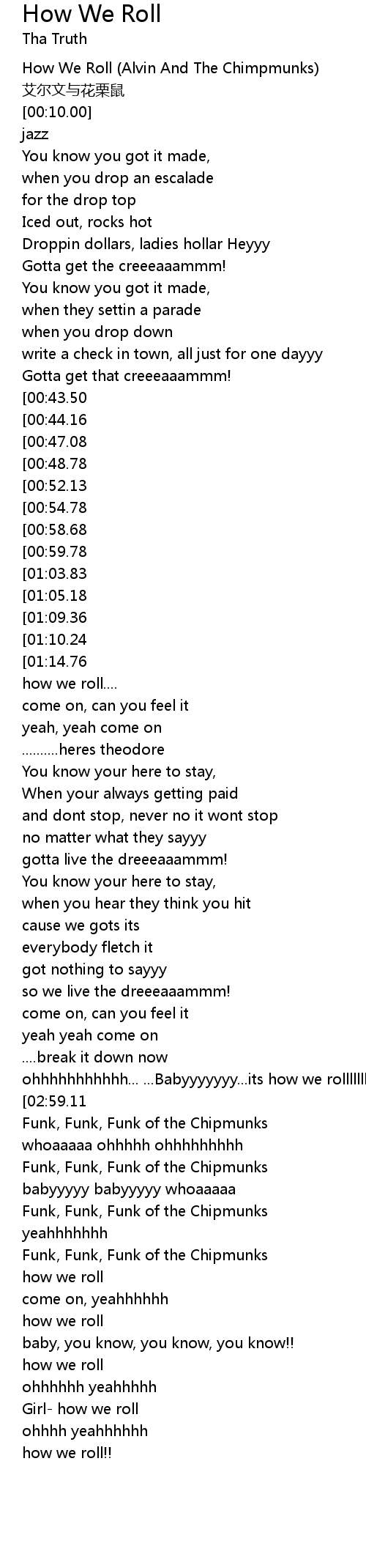 | [00:01.00] | How We Roll Alvin And The Chimpmunks |