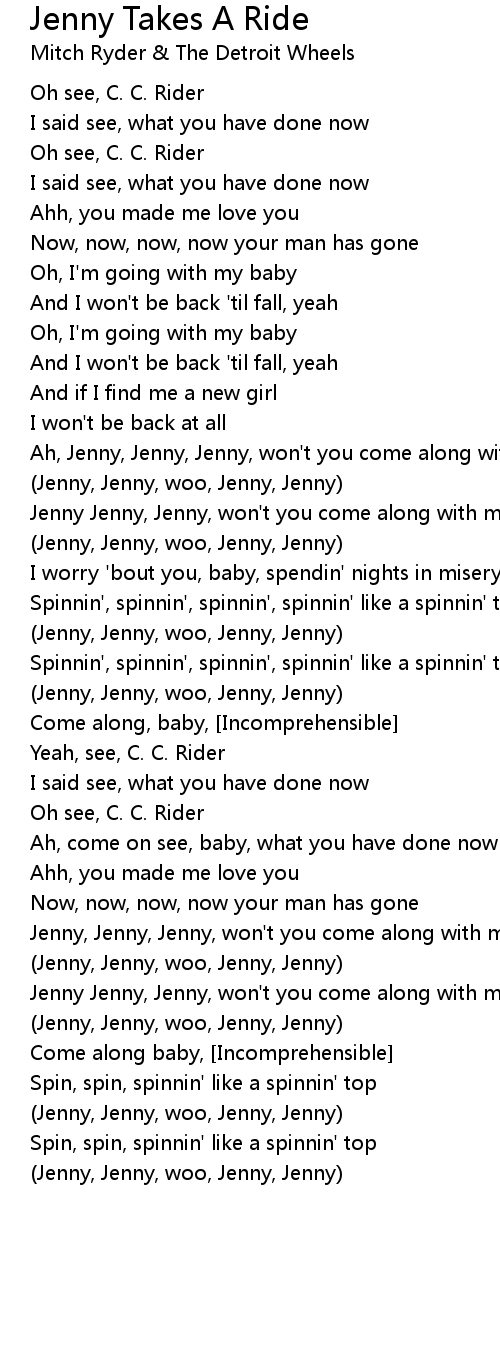 Ah, Jenny, Jenny, Jenny, won't you come along with me |
