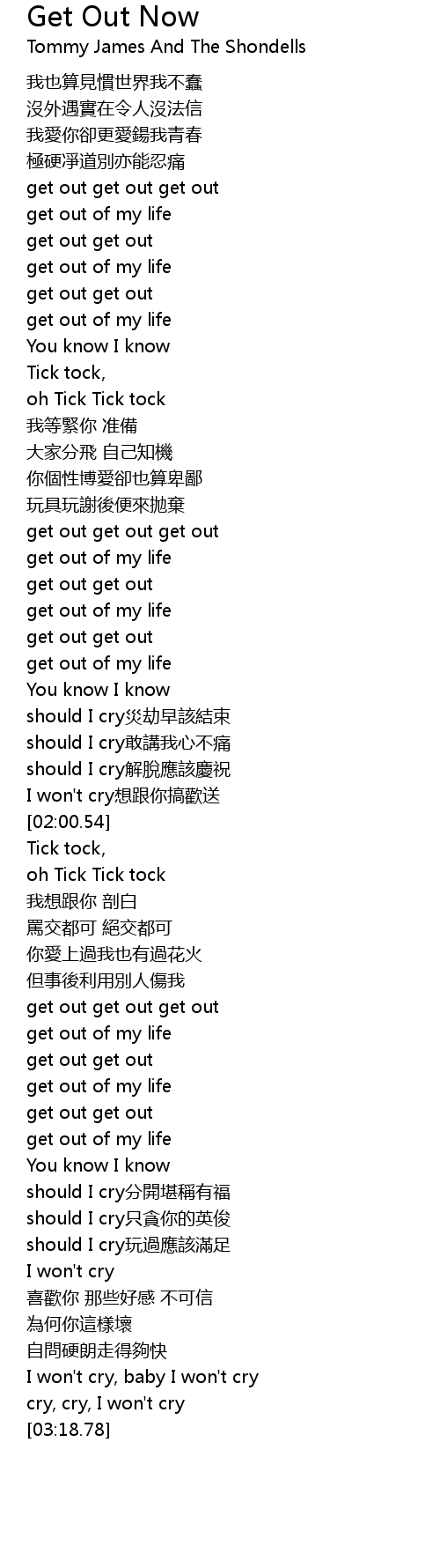 | [01:02.04] | get out get out |