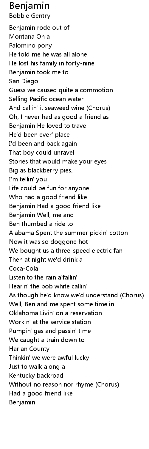 Benjamin Had a good friend like |