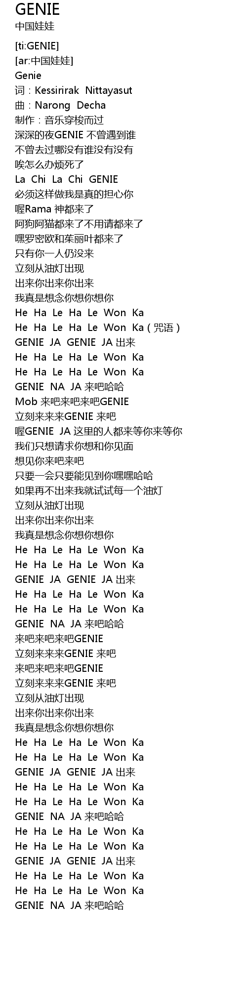 | [03:04.60] | GENIE NA JA lai ba ha ha |
