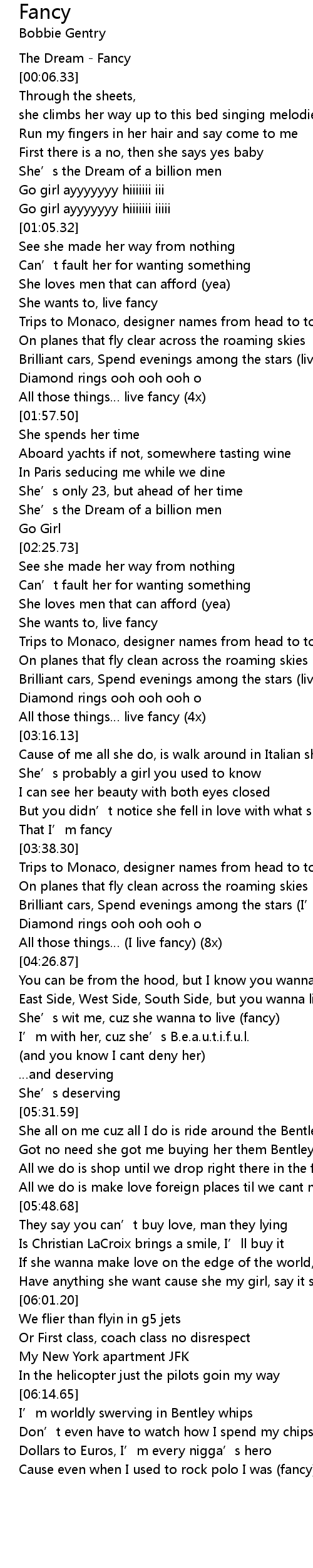 | [02:39.34] | Trips to Monaco, designer names from head to toe they' re fancy |