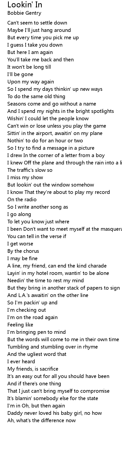 But lookin' out the window somehow |
