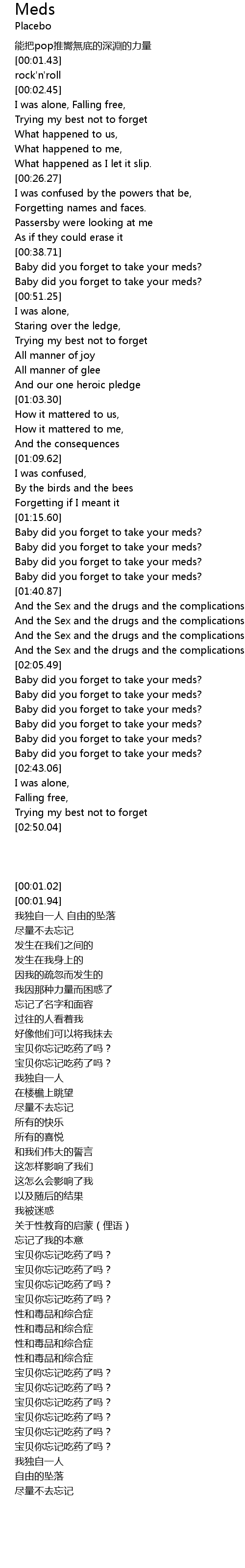 | [02:18.95] | Baby did you forget to take your meds? |
