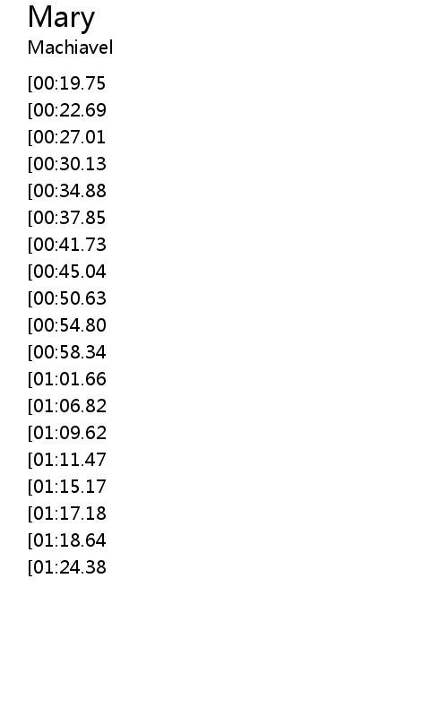 | [02:36.42][01:15.17] | 玛莉 玛莉 |