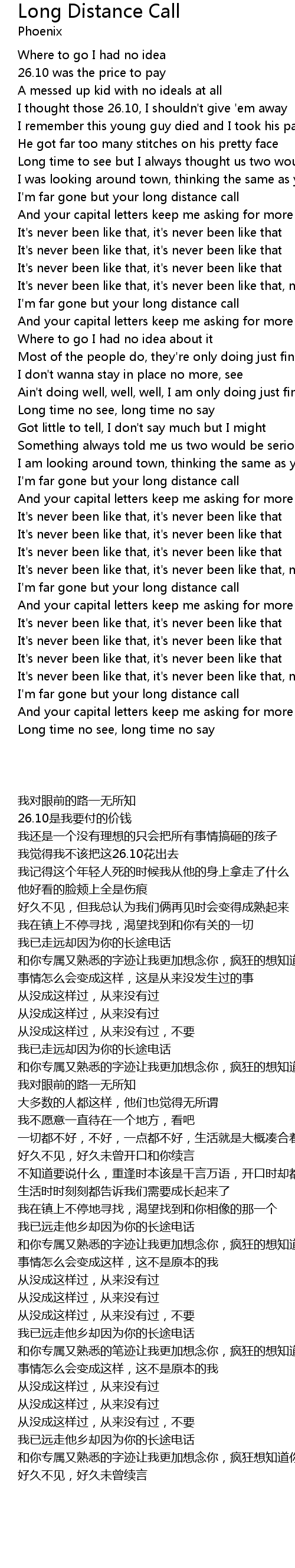 I'm far gone but your long distance call |