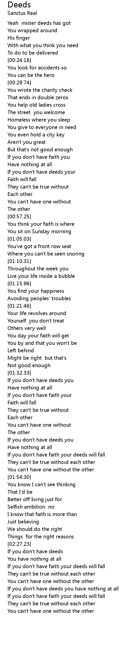 If you don't have faith your deeds will fall |