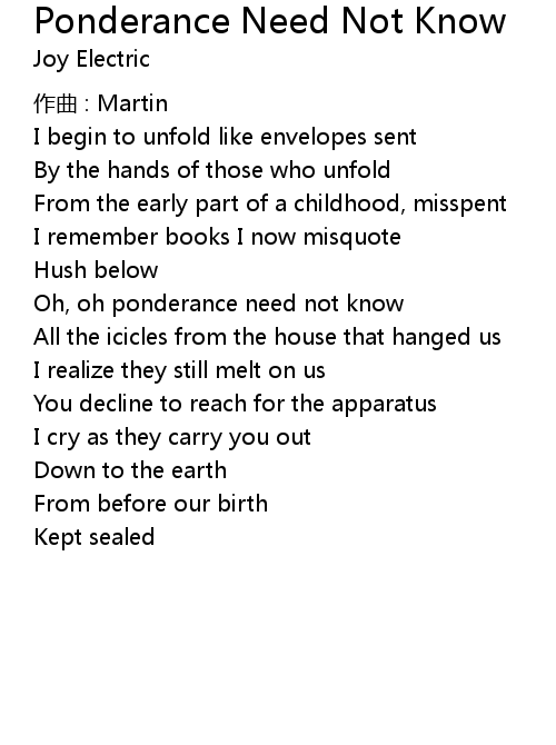 | 歌曲 | Ponderance Need Not Know |