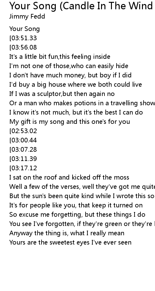 | 歌曲 | Your Song (Candle In The Wind Album Version) |