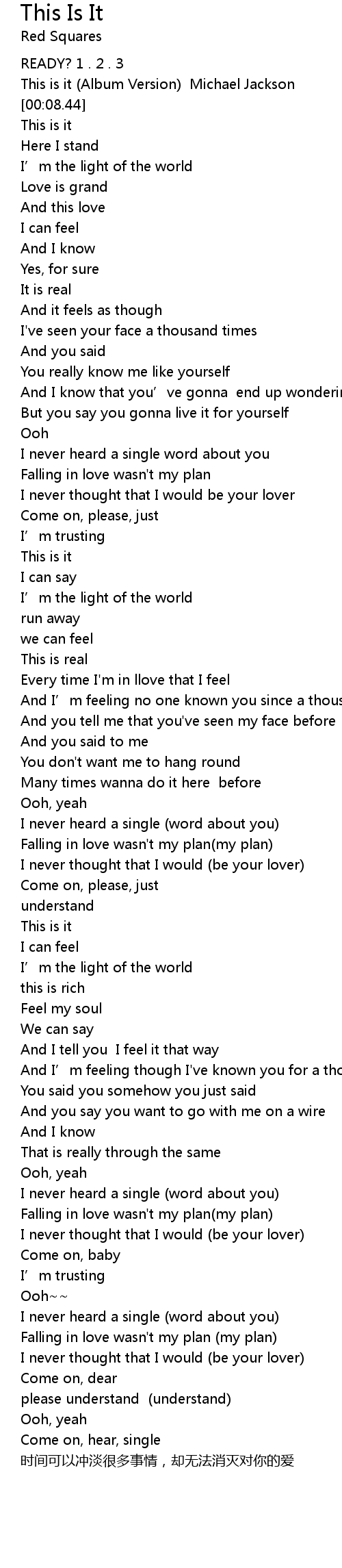 | [00:05.00] | This is it (Album Version) Michael Jackson |