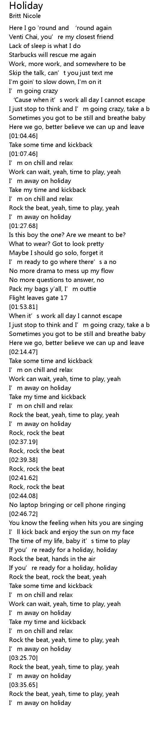 | [02:56.00] | If you’re ready for a holiday, holiday |