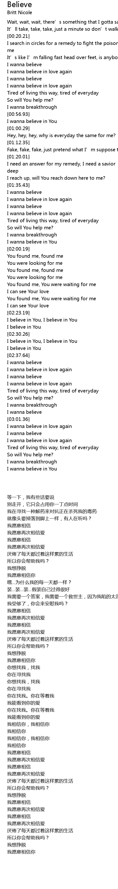 | [03:21.42] | I wanna believe in You |