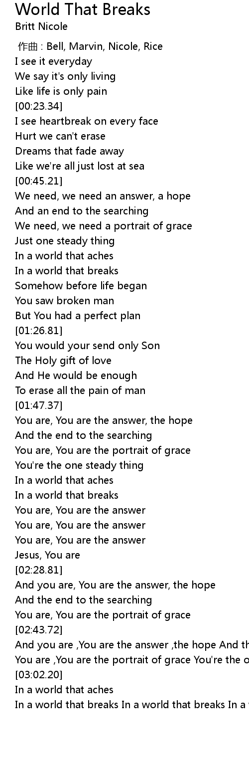 | [03:07.50] | In a world that breaks In a world that breaks In a world that breaks |