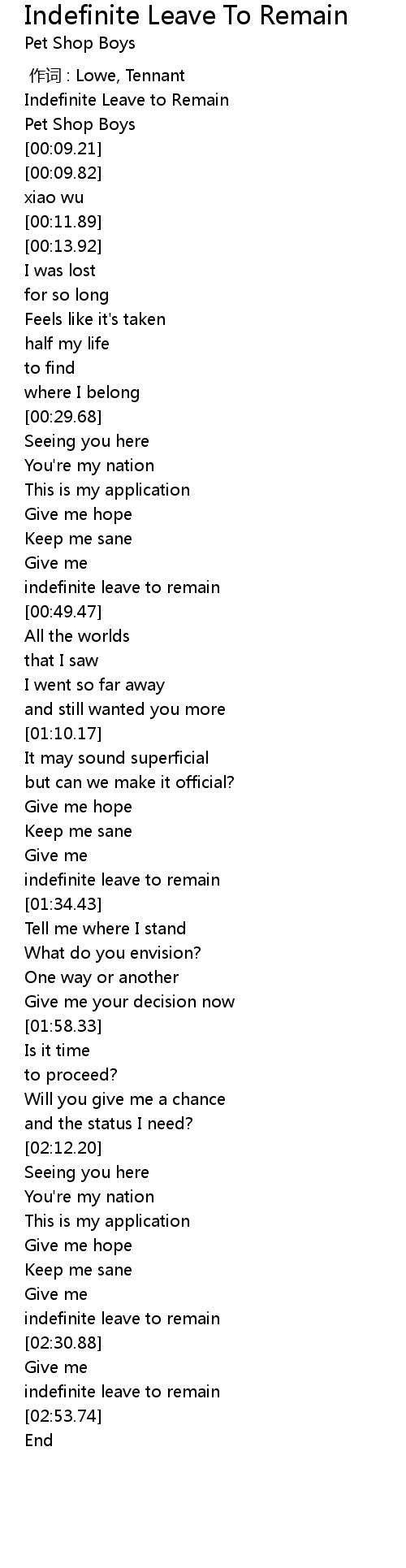 | [00:00.00] | 作词 : Lowe, Tennant |