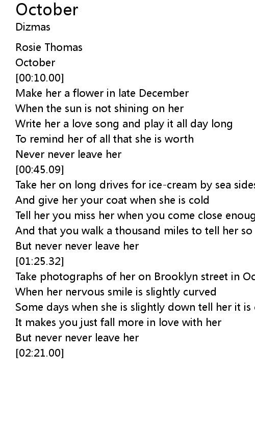 | [01:28.00] | Take photographs of her on Brooklyn street in October |