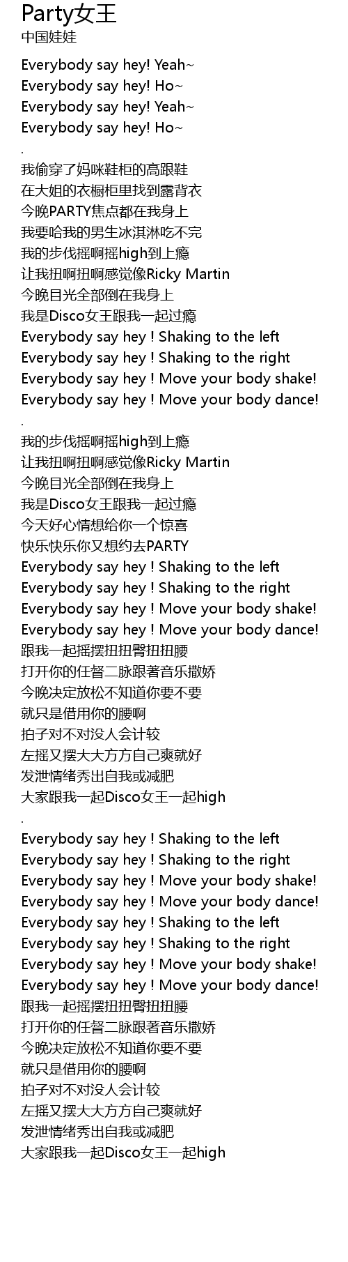 | [02:22.69] | Everybody say hey ! Move your body shake! |