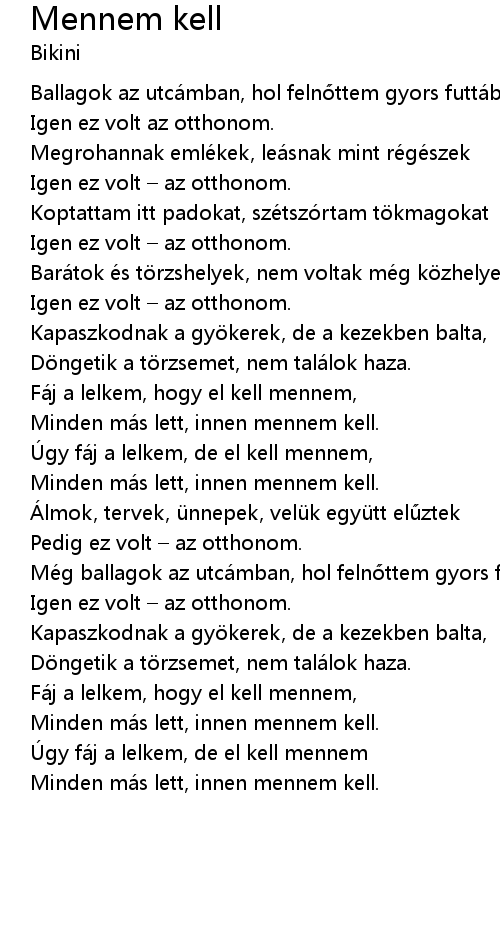 | Me g ballagok az utca mban, hol feln ttem gyors futta ban | |