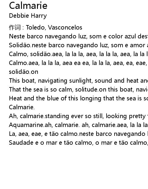 | Aquamarine.ah, calmarie. ah, calmarie.aea, la la la, aea, la la la, aea, la la | |