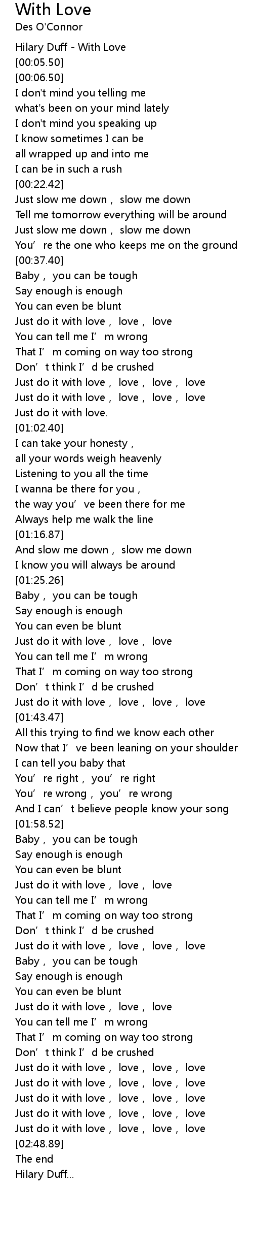 | [00:02.50] | Hilary Duff - With Love |
