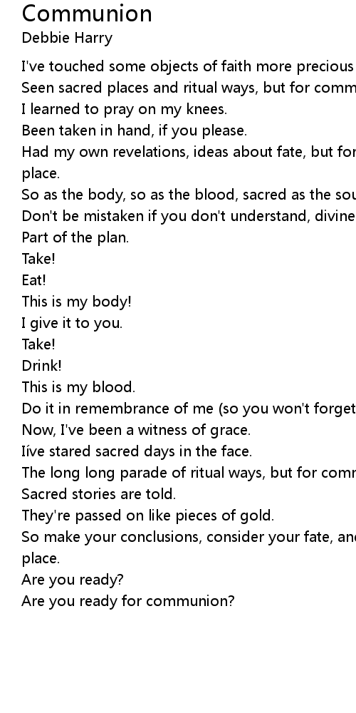 | The long long parade of ritual ways, but for communion let' s go to my place. | |
