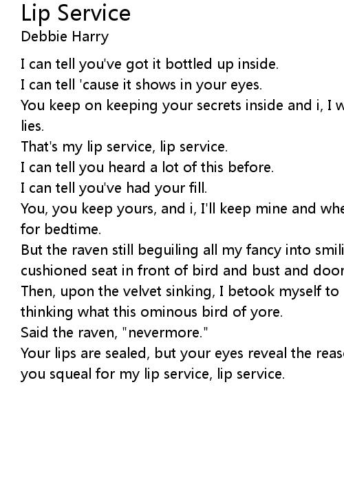 Your lips are sealed, but your eyes reveal the reason you tell me, the reason you squeal for my lip service, lip service. |