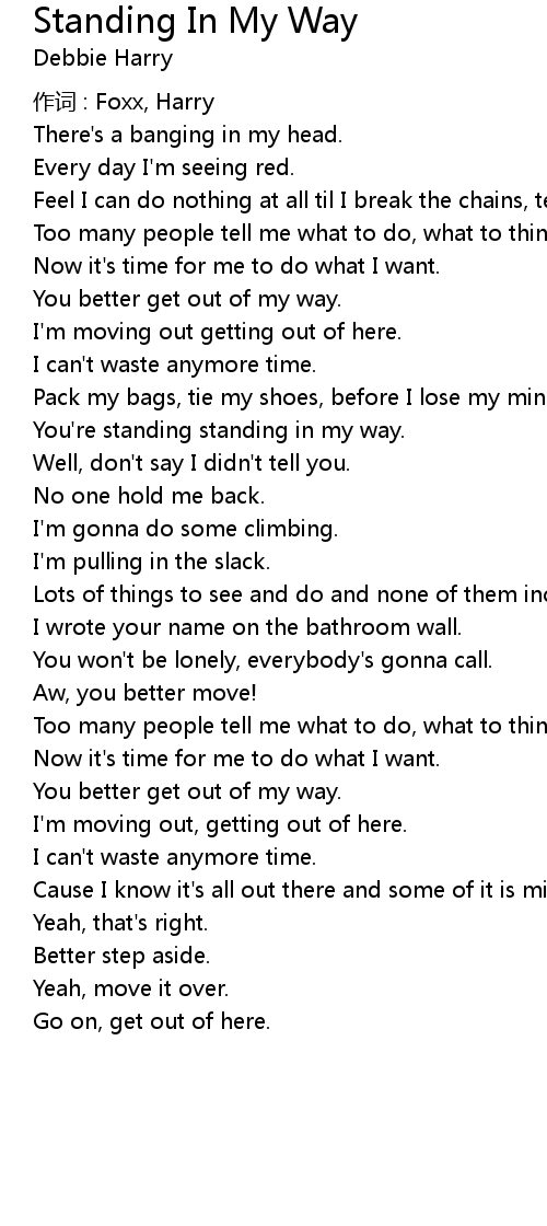 | You're standing standing in my way. | |