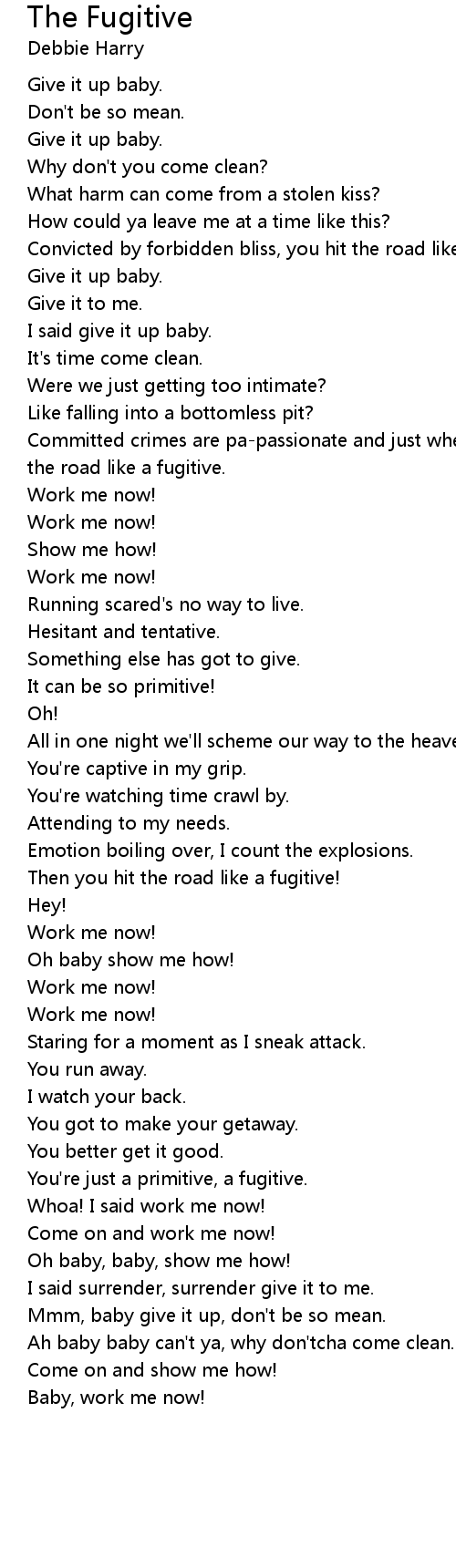 Committed crimes are pa-passionate and just when it gets so primitive, you hit the road like a fugitive.