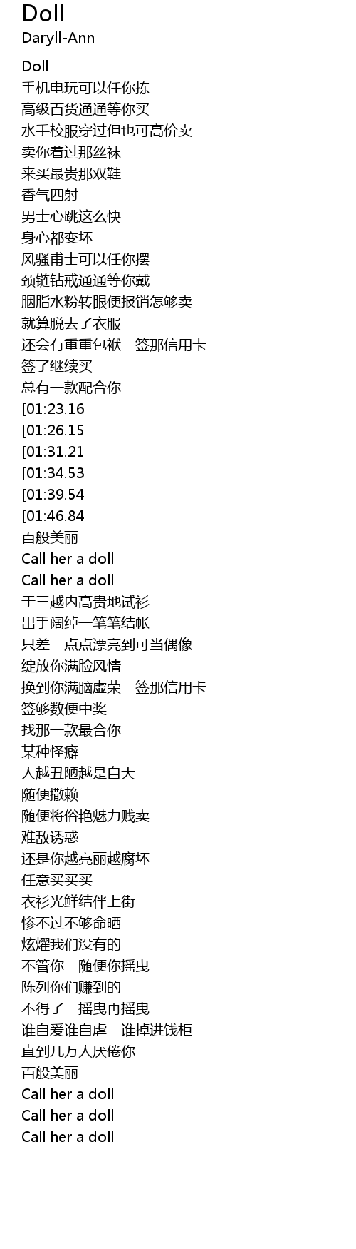 | [01:59.20] | Call her a doll |