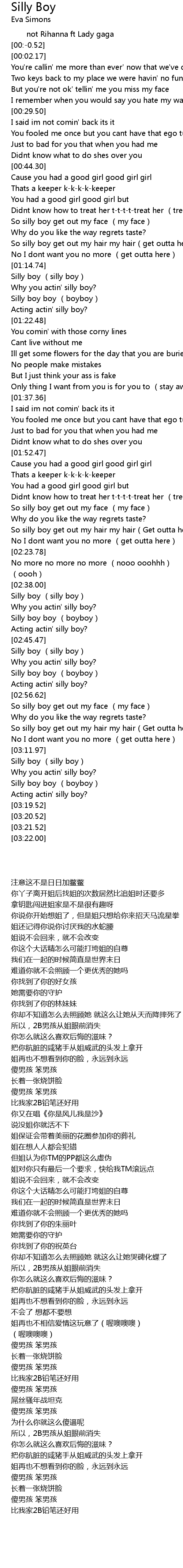 | [03:16.72] | Silly boy boy boyboy |