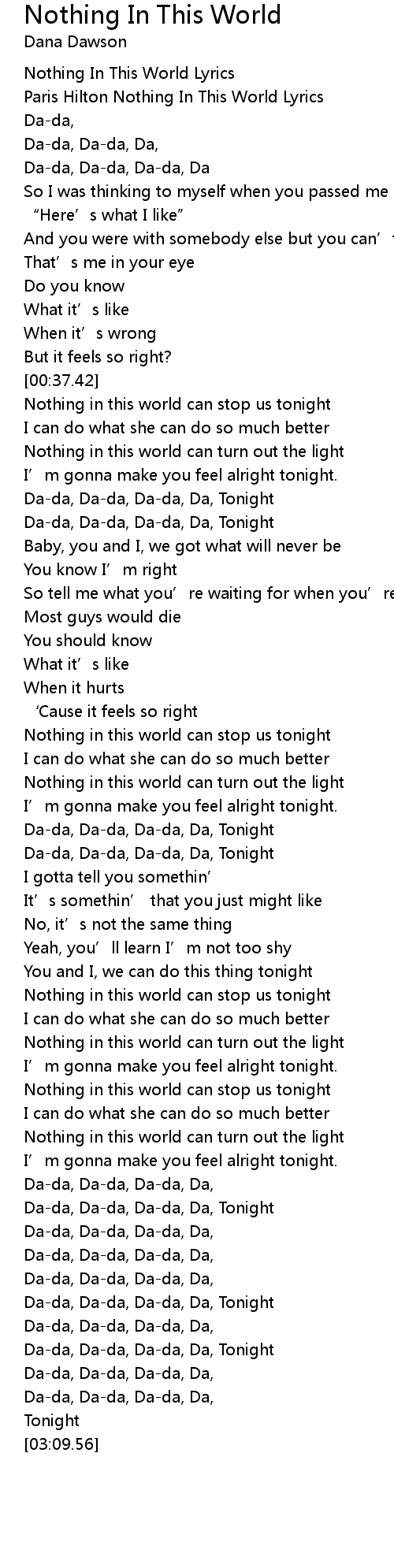 | [00:06.71] | Paris Hilton Nothing In This World Lyrics |