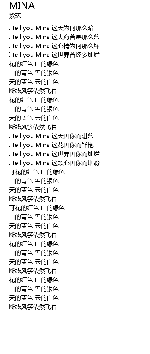 | [00:34.59] | I tell you Mina 这大海曾是那么蓝 |