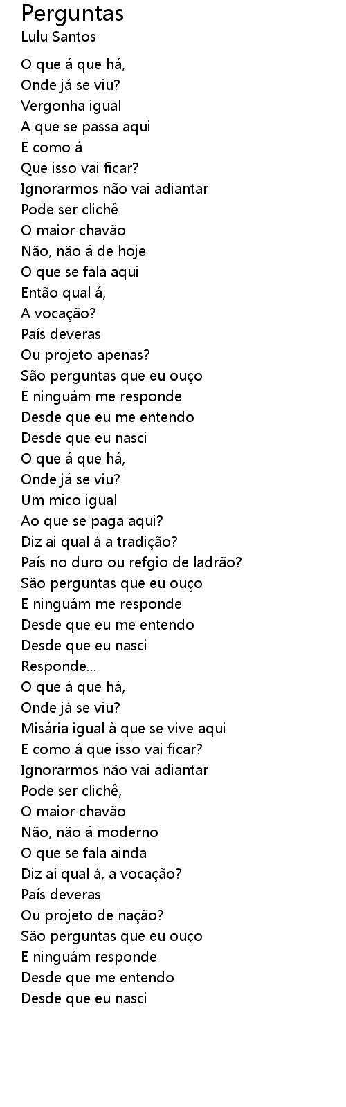 | São perguntas que eu ouço | |
