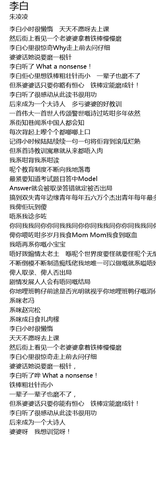 | 李白小时很懒惰 天天不愿呀去上课 | |