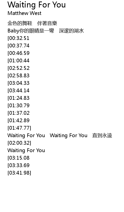 | [04:32.14][03:33.69] | Waiting For You Waiting For You Waiting For You |