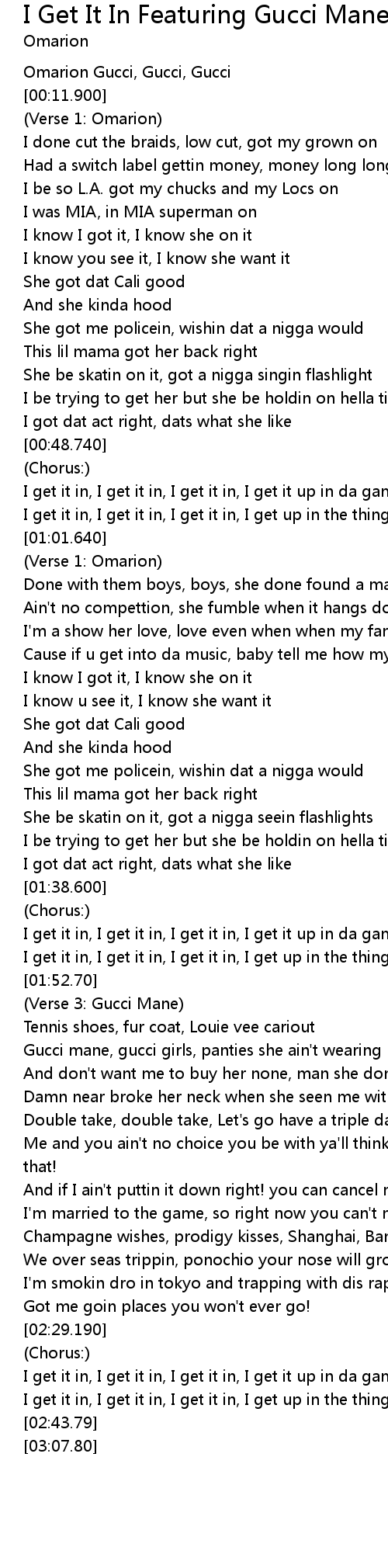| [00:03.710] | Omarion Gucci, Gucci, Gucci |