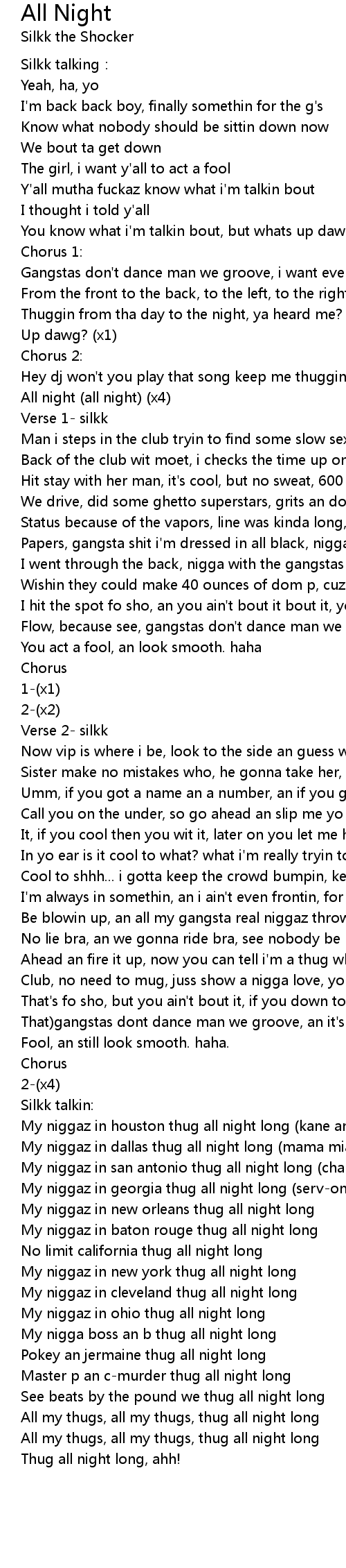 | Gangstas don' t dance man we groove, i want everybodys bitch to move look | |