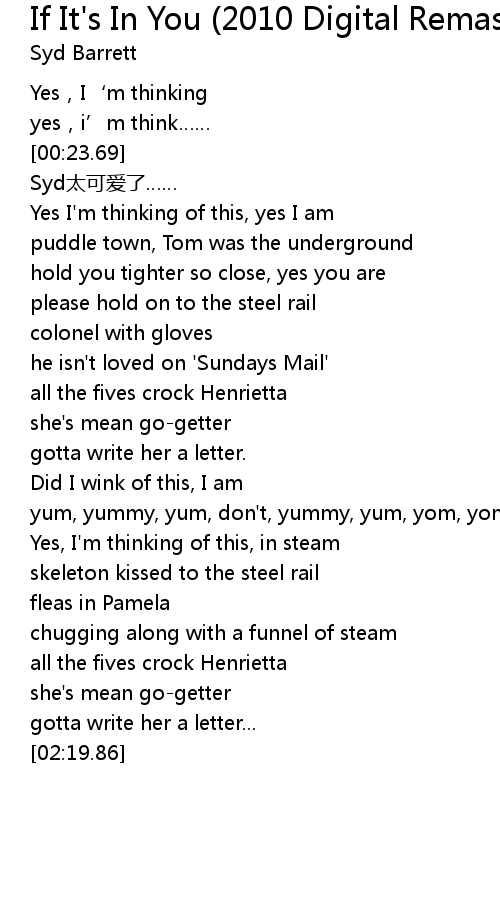| 歌曲 | If It's In You (2010 Digital Remaster) |