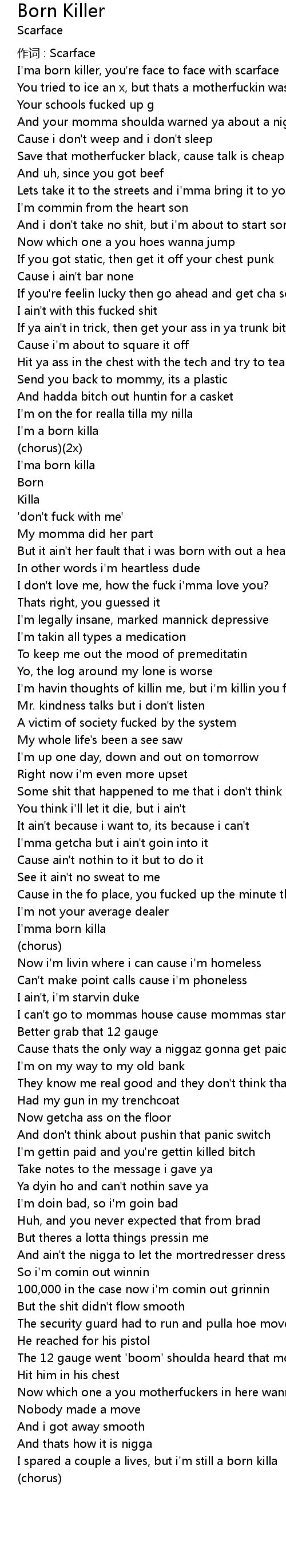 | I' m havin thoughts of killin me, but i' m killin you first | |