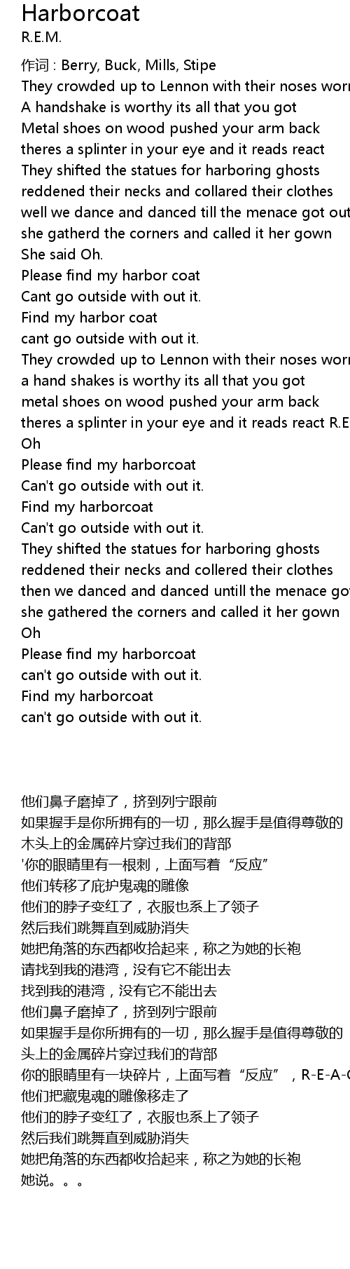 | 歌曲 | Harborcoat |